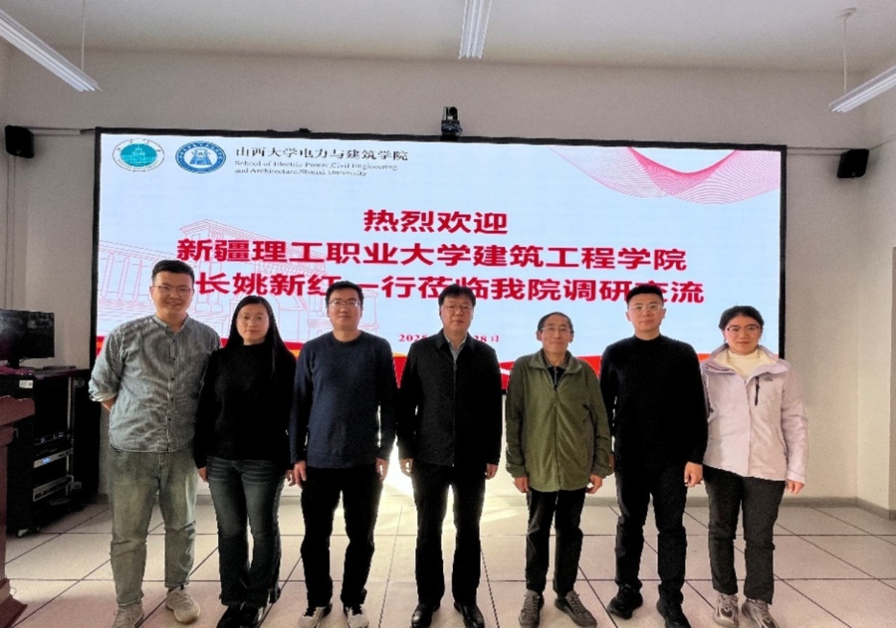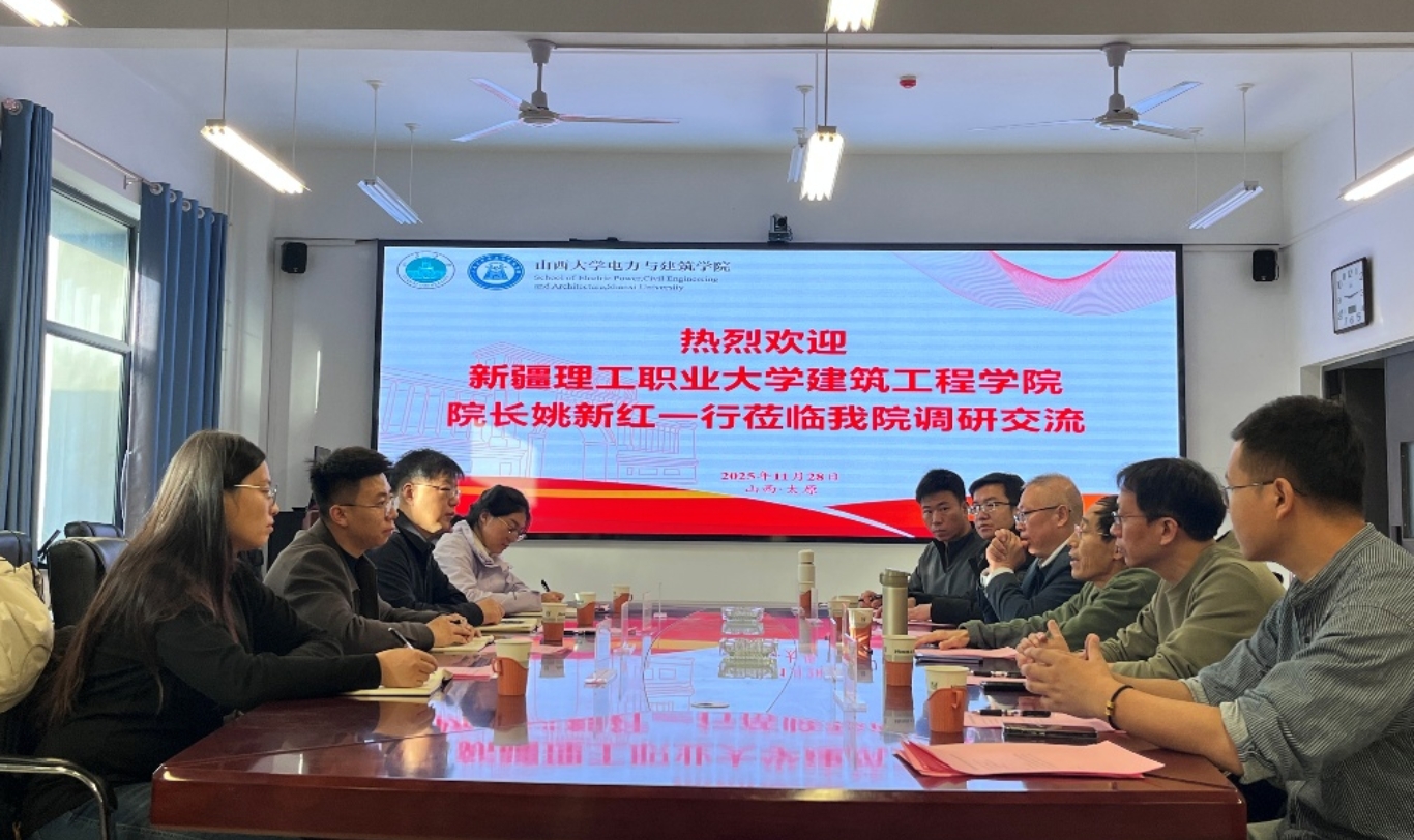 2025年11月28日,新疆理工职业大学建筑工程学院院长姚新红、实训中心负责人杜荣凯、党政办负责人孙蕾蕾、学工办负责人苑志笑等一行4人到访我院。我院党委书记刘建、院长薛太林、土木与建筑工程系主任朱翔、土建学科主任贾冠华、系副主任徐清浩、教研室主任付腾飞等参加了交流座谈会。会议由薛太林院长主持。